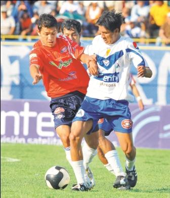 Ref. Fotografia: no pudo • La marca de Rolando Ribera sobre Nelson Sossa para dejarlo sin acción. El delantero no estuvo bien.